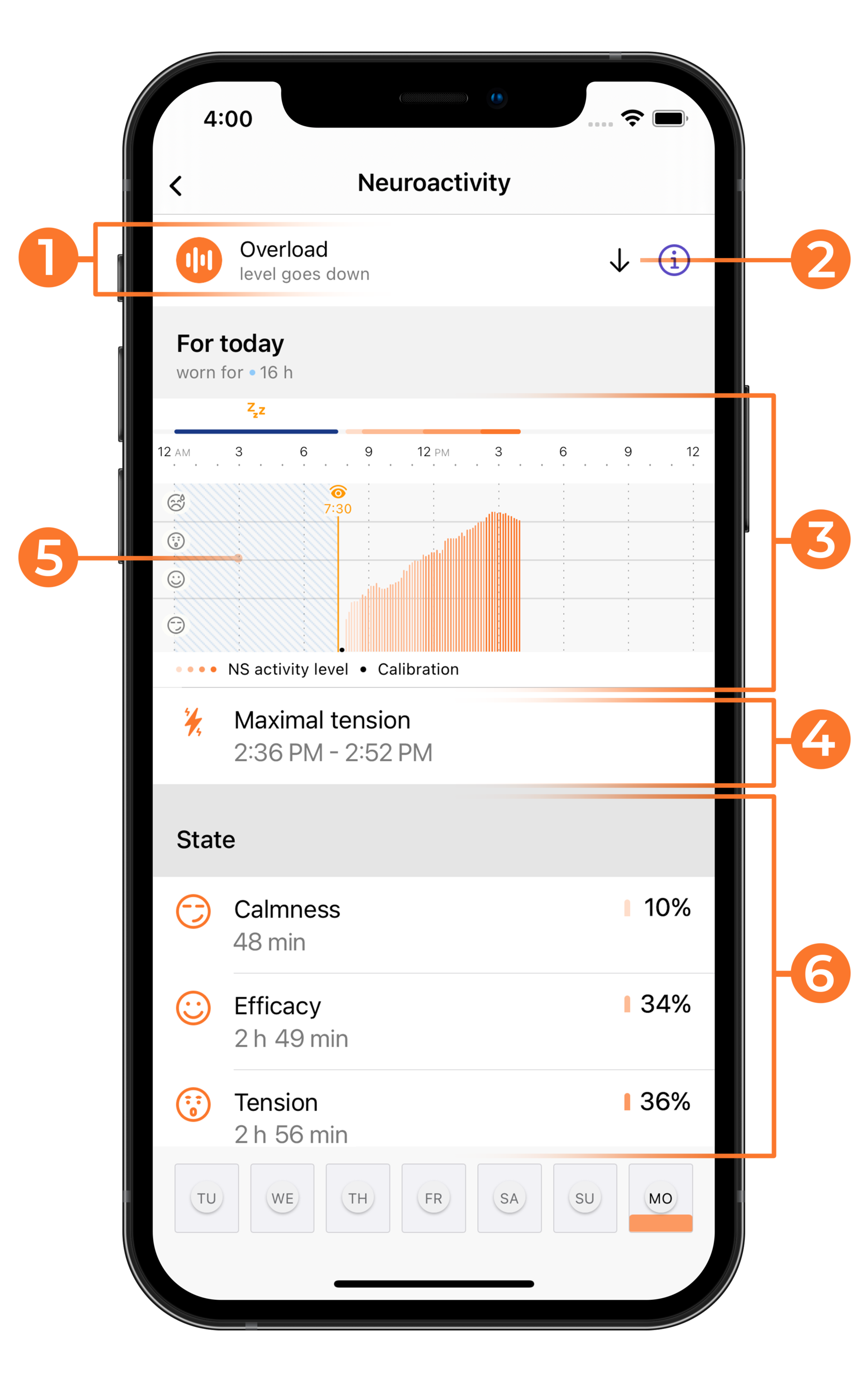 The neuroactivity feature monitors nervous system activity and tension to help you know when its time to stop and pay attention to yourself. Accompanied by sleep analysis, physical stress detection and smart alarms, this unique data will help you find ways to recover better, wake up easier, and greet your days happier.